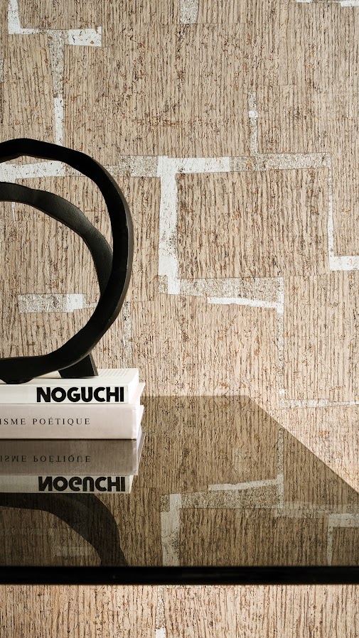 Kork bedruckt und geprägt mit metallischem Untergrund,